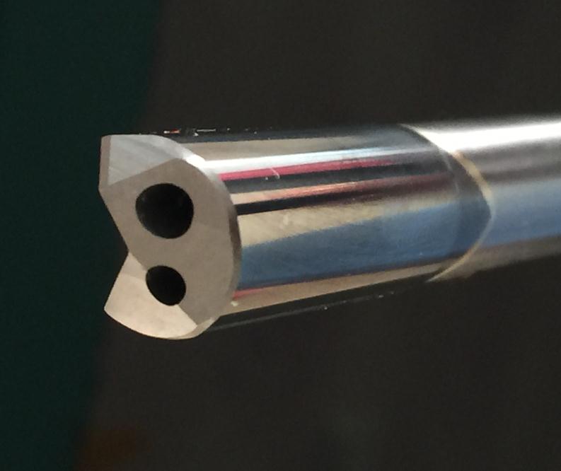 針對以上加工特性,現(xiàn)在市場上小直徑的槍鉆采用整體鎢鋼刀柄,大大提高了刀具的剛性,對于抗粘附性則采用切削合金部分涂層處理,通過涂層,大大提高刀具的耐磨性,抗粘附性。